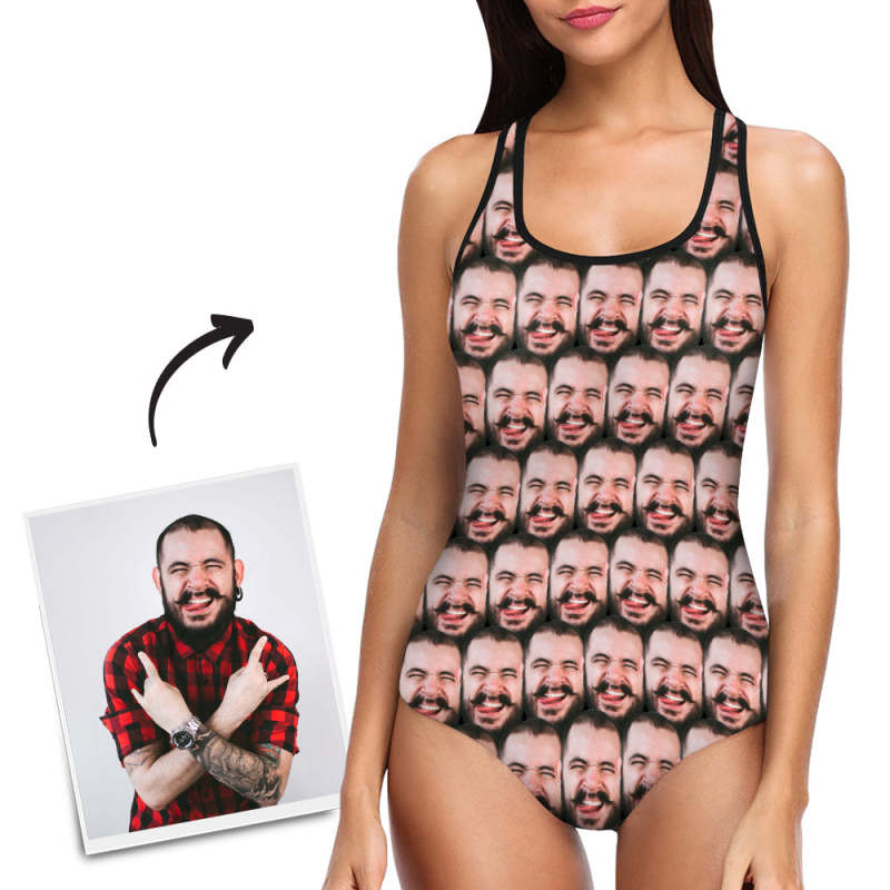 Maillots de bain visage personnalisés aux femmes Photo Caleçon Maillot de bain une pièce Cadeau pour elle - Mash