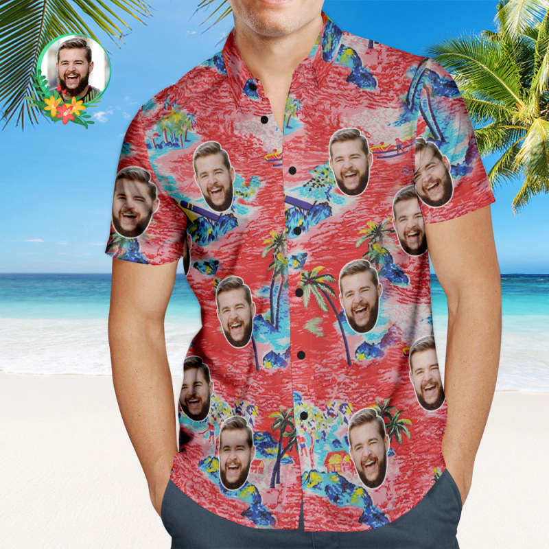 Chemise Hawaïenne Visage Personnalisée Beau Paysage Chemise Personnalisée Avec Votre Visage