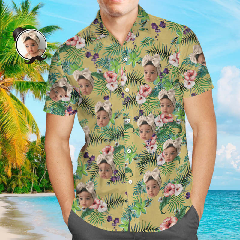 Chemise Hawaïenne Visage Personnalisée Fleurs Fête Des Pères Chemise Cadeau Pour Papa