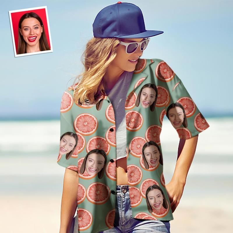 Chemise Hawaïenne Visage Personnalisé Pour Femme Chemise Hawaïenne Photo Personnalisée Pour Femme Cadeau Pour Elle - Pamplemousse Groovy