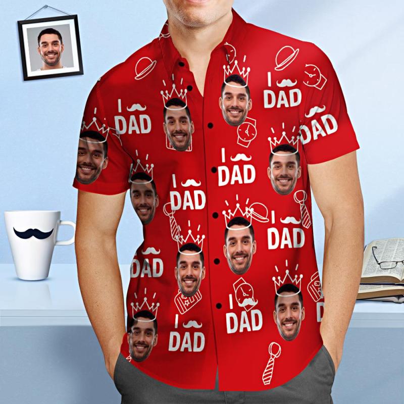 Chemise Hawaïenne De Visage Personnalisé J'aime Papa Chemise De Fête Des Pères Personnalisée Cadeau Pour Papa