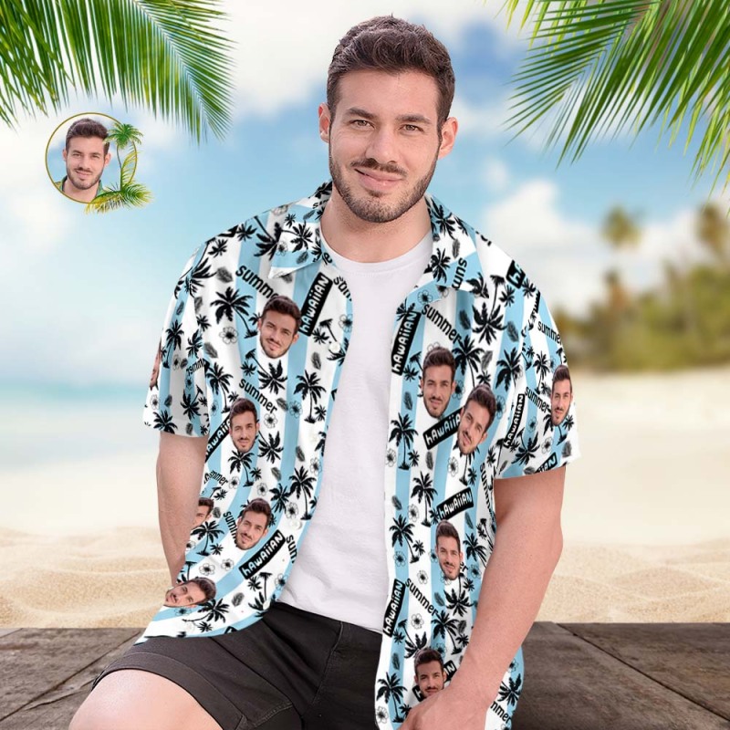 Chemise Hawaïenne Personnalisée Pour Hommes, Cadeau De Chemise Aloha Imprimé Partout - Rayé Bleu Et Blanc - VisageChaussettes Chemise Hawaïenne Personnalisée Pour Hommes, Cadeau De Chemise Aloha Imprimé Partout - Rayé Bleu Et Blanc - VisageChaussettes Chemise Hawaïenne Personnalisée Pour Hommes, Cadeau De Chemise Aloha Imprimé Partout - Rayé Bleu Et Blanc - VisageChaussettes
