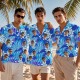Chemise Hawaïenne Personnalisée Avec Visage, Chemise Hawaïenne À Fleurs Bleues Personnalisée, Cadeaux De Vacances Tropicales