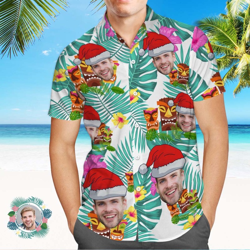 Chemises Hawaïennes Avec Visage Personnalisé, Cadeau Avec Photo Et Nom Pour Hommes, Chemises De Noël, Cadeaux De Joyeux Noël