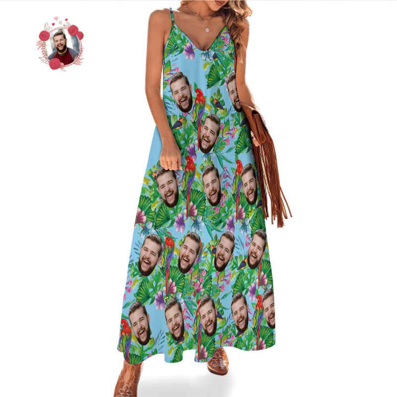 Robe Longue Perroquet Coloré De Style Hawaïen De Visage Personnalisé Et Famille Assortie De Chemise