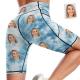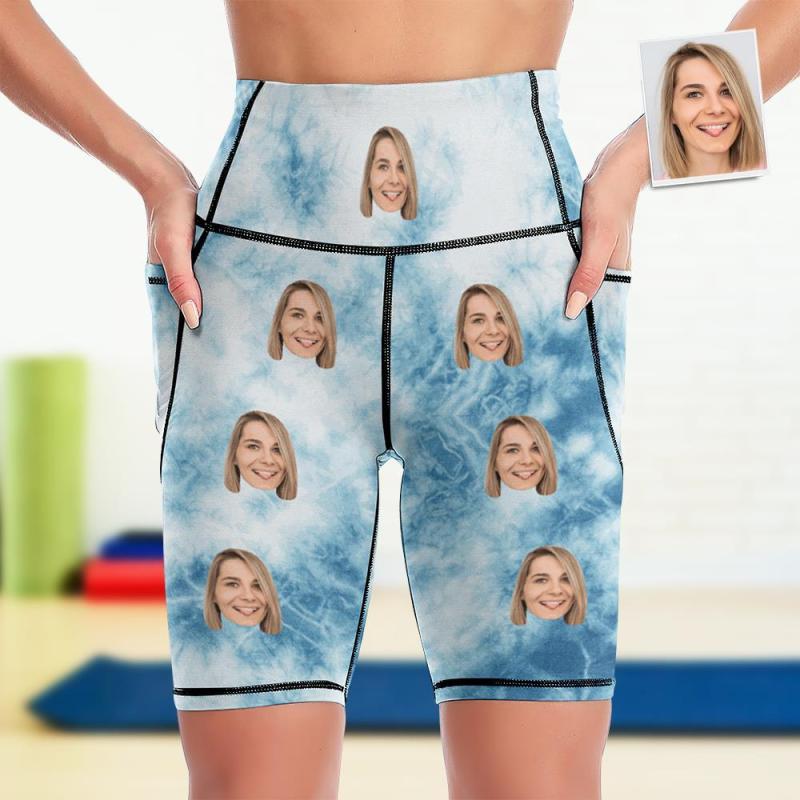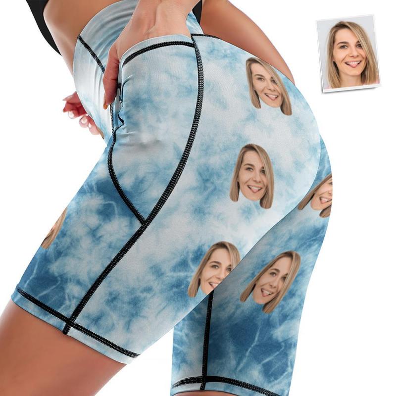 Visage Personnalisé Genou Longueur Collants Yoga Shorts Femmes Courir Leggings Avec Poches - Bleu Tie Dye