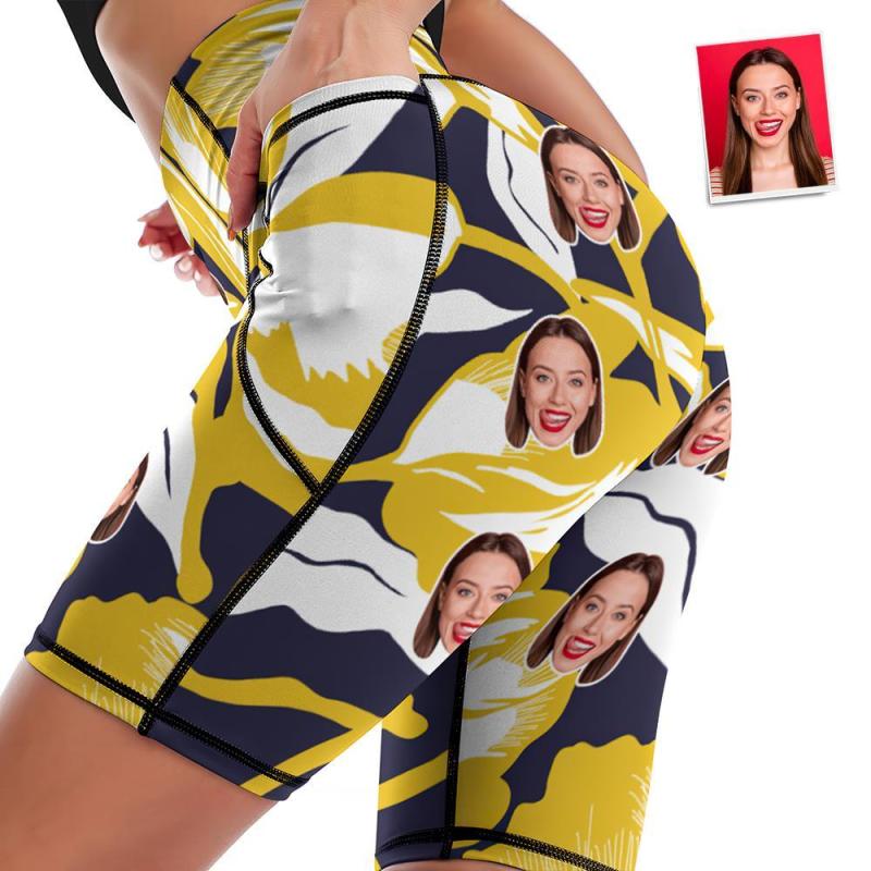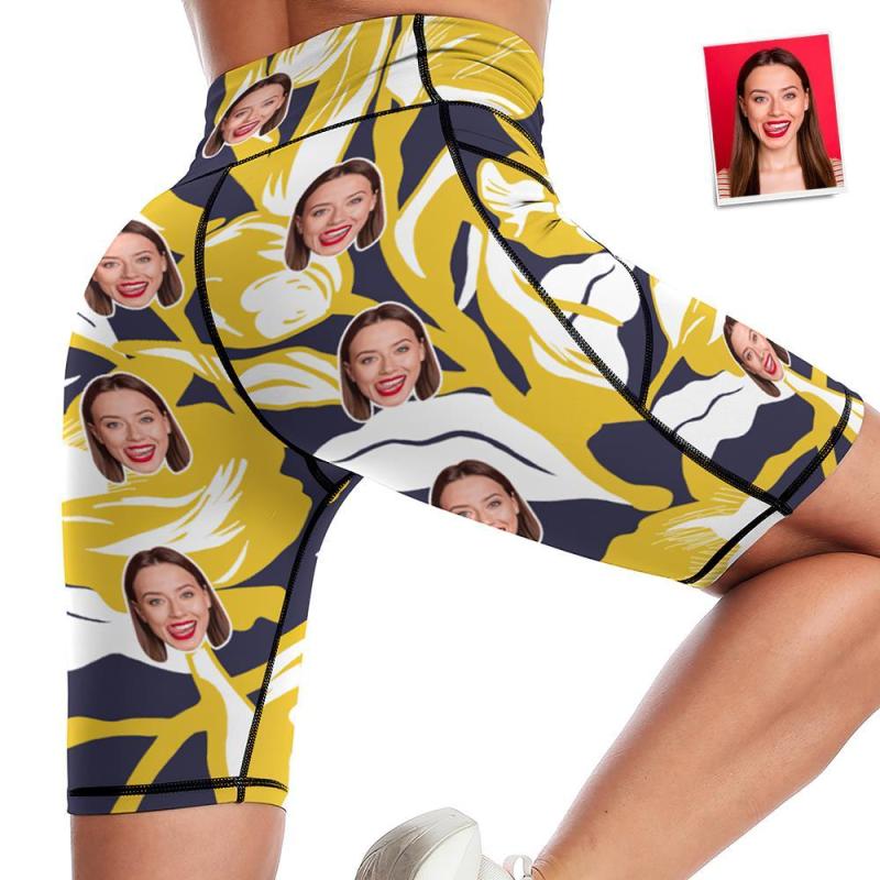 Visage Personnalisé Genou Longueur Collants Shorts De Yoga Pour Femmes Running Leggings Avec Poches - Fleurs Jaunes