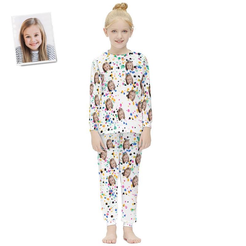 Pyjama À Manches Longues Visage Personnalisé Pour Enfants - Éclaboussures De Peinture