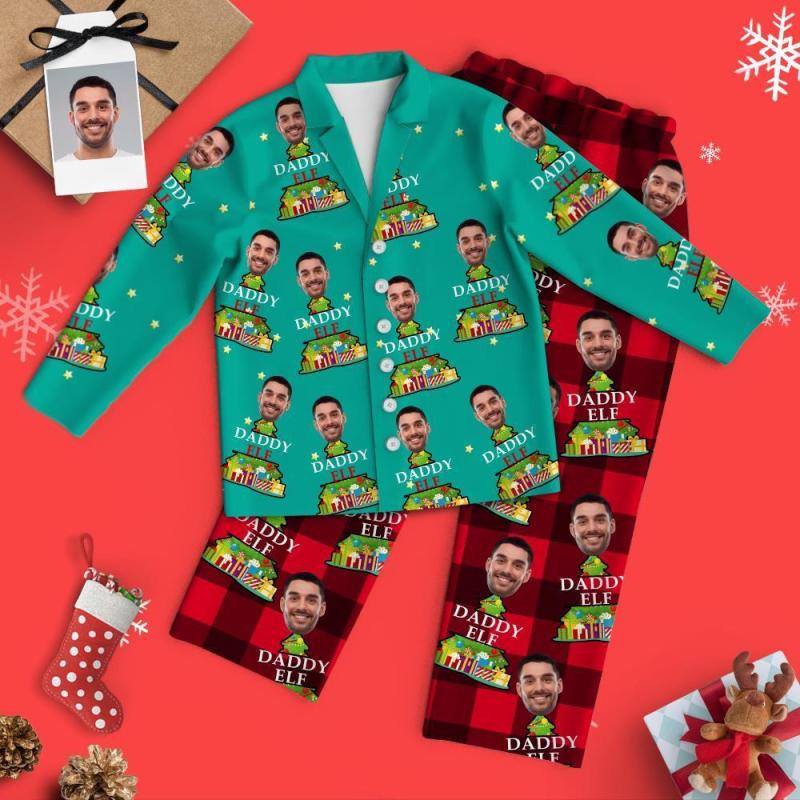 Ensemble Noël familial de pyjamas à visage personnalisé - Papa sur l'arbre