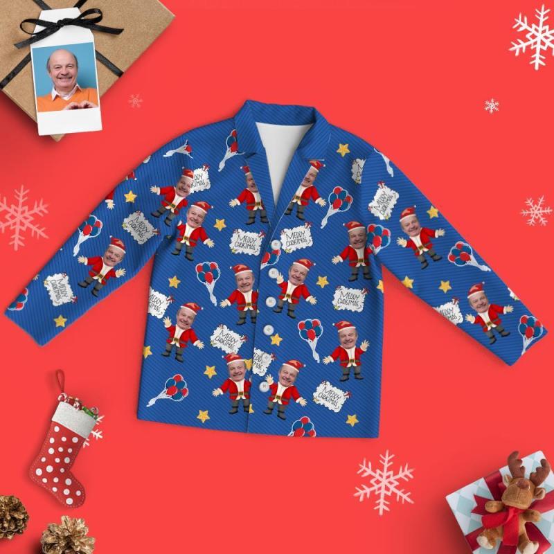 Ensemble Noël familial de pyjamas à visage personnalisé - Père Noël bleu