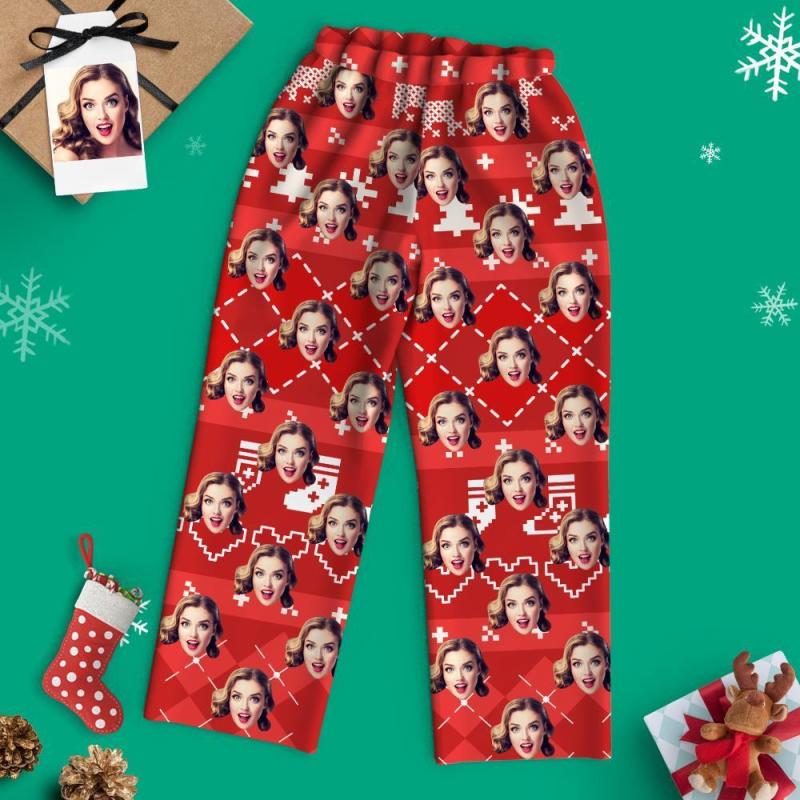 Ensemble Noël familial de pyjamas avec visage personnalisé - Lignes de pixels