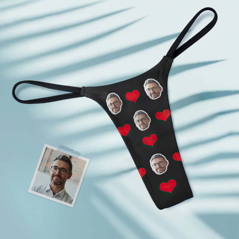 String Tanga Femme Coeurs D'amour Visage Personnalisé