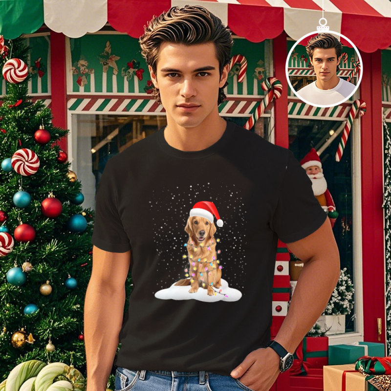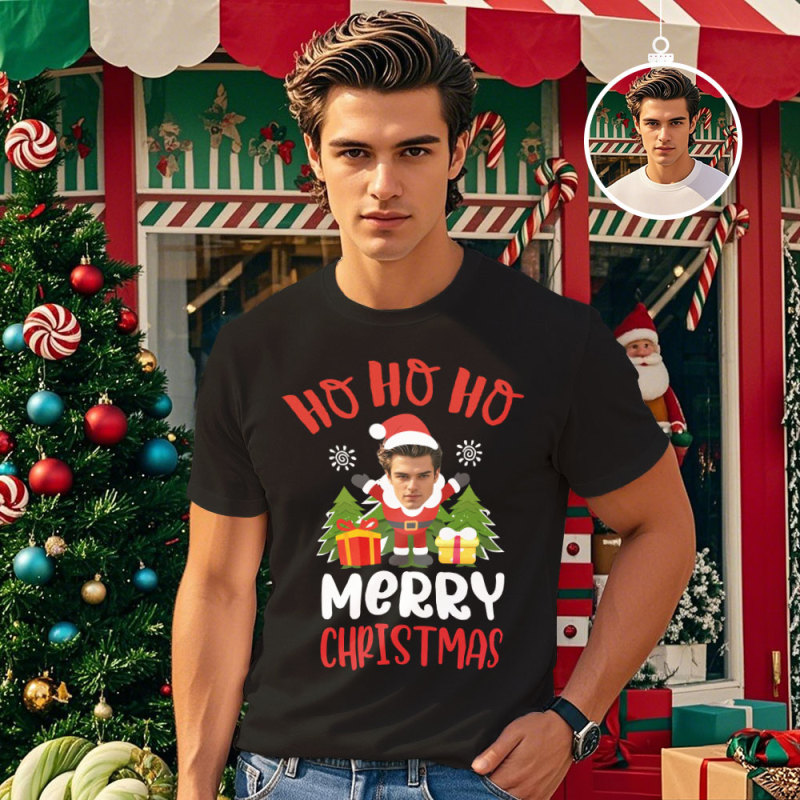 T-shirt Personnalisé Avec Photo De Visage, Père Noël, Lumières De Palmier, T-shirt De Noël