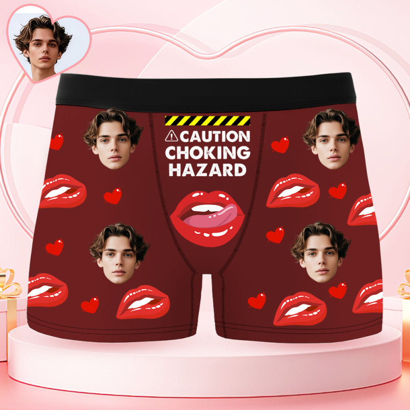 Boxers Personnalisés Pour Hommes - Attention Risque D'étouffement - Boxer Lèvres Rouges - Cadeau Personnalisé Avec Photo - Boxers Humoristiques Pour Hommes