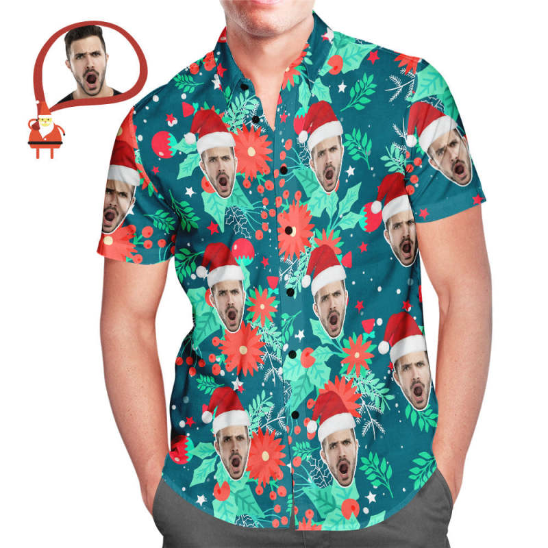 Imprimez votre visage sur une vraie chemise hawaïenne de Noël pour homme. Encouragez-vous ou montrez votre amour et votre soutien à votre bien-aimé avec votre idée géniale. Les meilleurs cadeaux personnalisés pour votre amoureux, votre famille et vos amis.