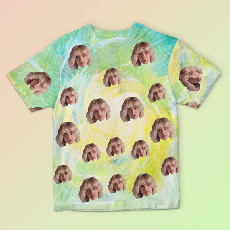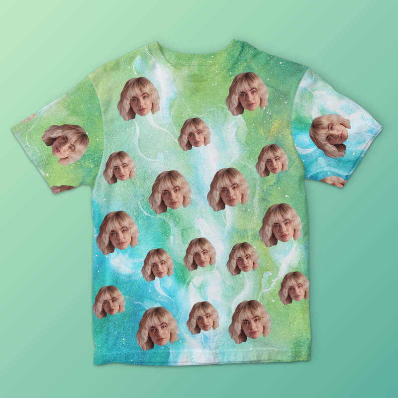T-shirt Homme Visage Personnalisé Photo Personnalisée T-shirt Encre De Couleur Drôle Couleur Verte