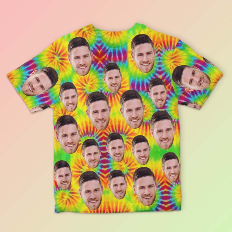 T-shirt Homme Visage Personnalisé Photo Personnalisé T-shirt Tie Dye Drôle Cadeau Pour Homme Coloré