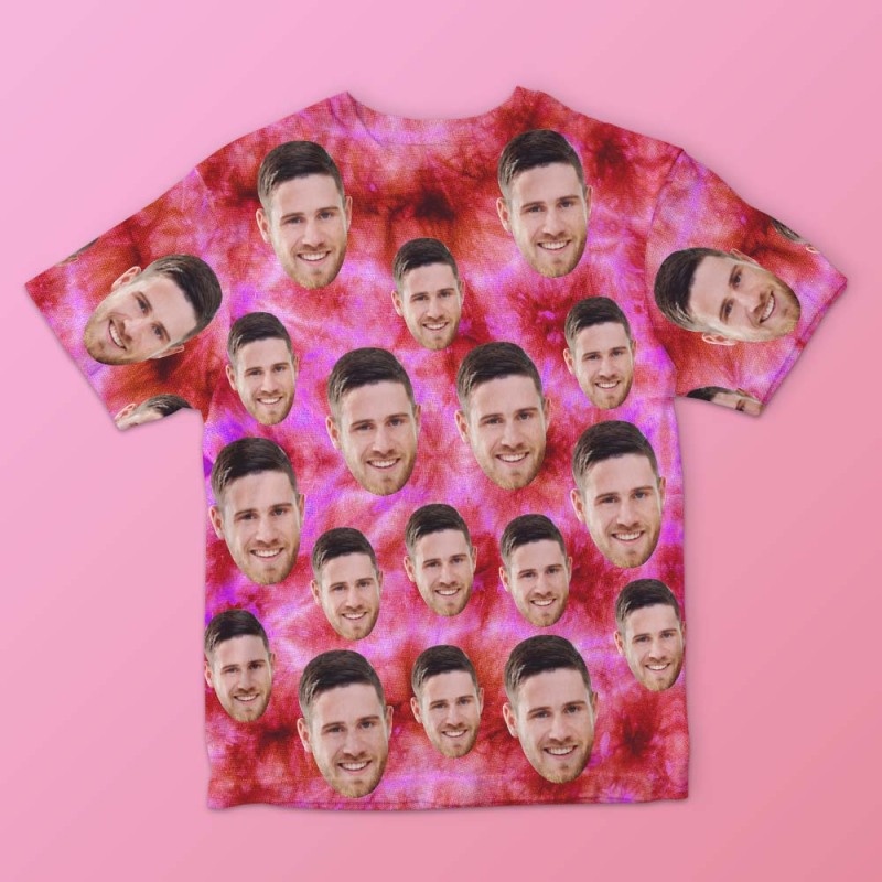 T-shirt Homme Visage Personnalisé Photo Personnalisé T-shirt Tie Dye Drôle Cadeau Pour Homme Rose