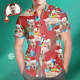 Visage Personnalisé Joyeux Noël Père Noël Chemise Hawaïenne Imprimée Pour Homme Cadeau De Noël