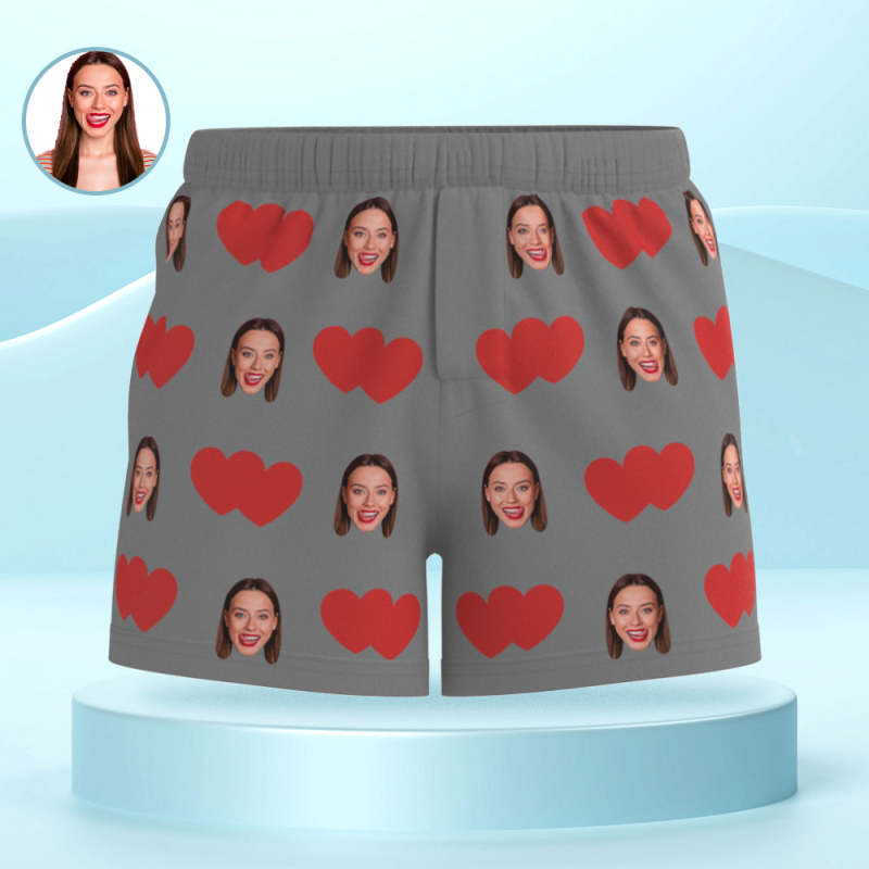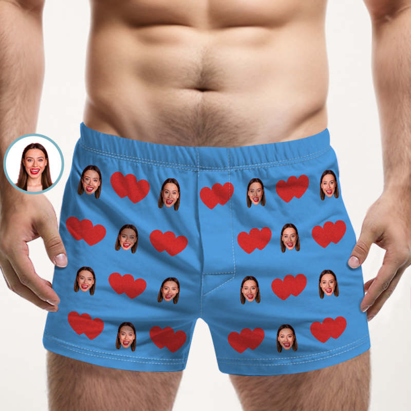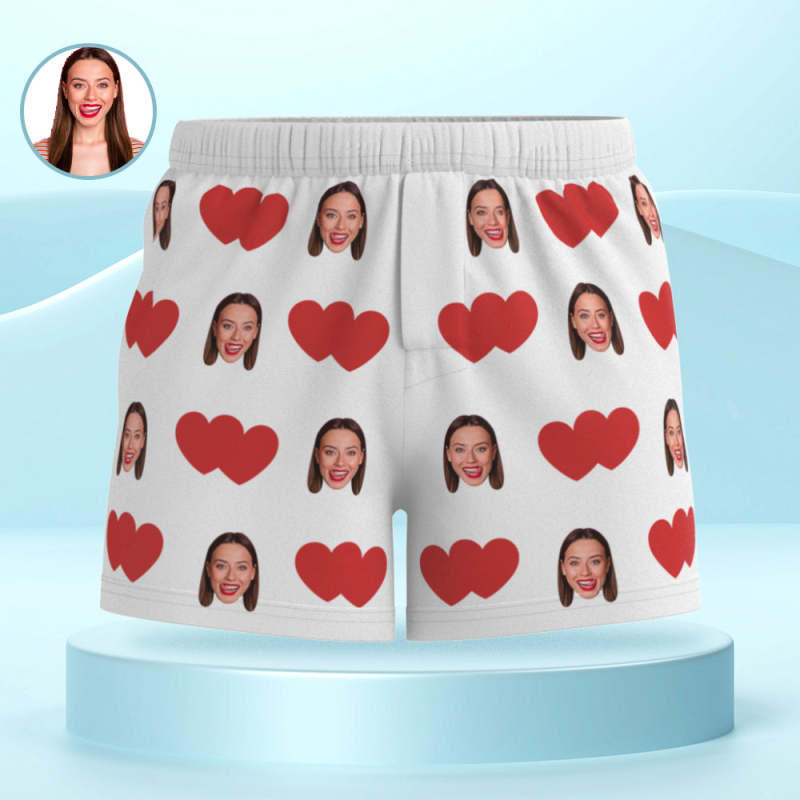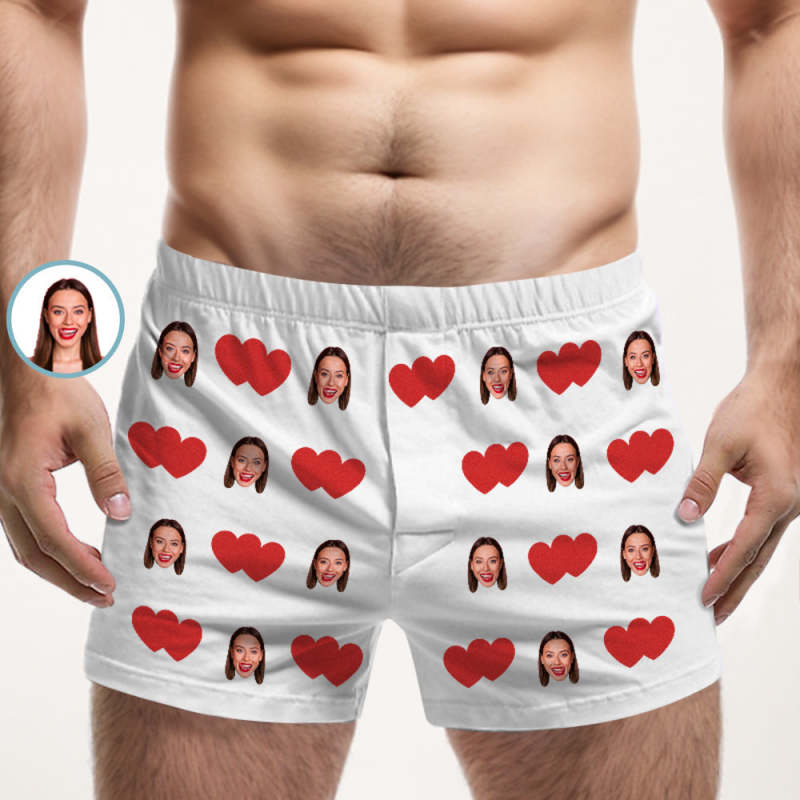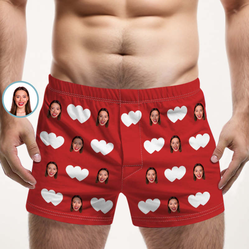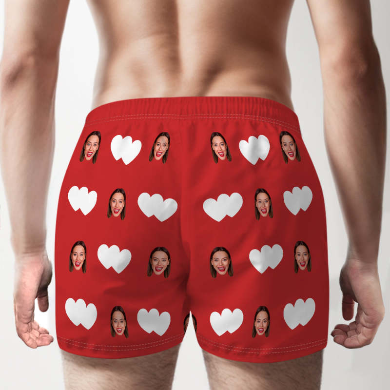 Boxer Multicolore Visage Personnalisé Coeur Rouge Sous-vêtements Photo Personnalisés Cadeau Pour Lui