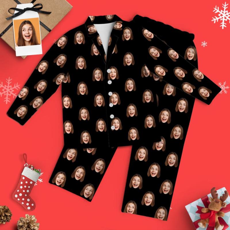 Cadeaux de pyjama de visage personnalisés pour ensemble de vêtements de nuit pour la maison familiale - Coloré