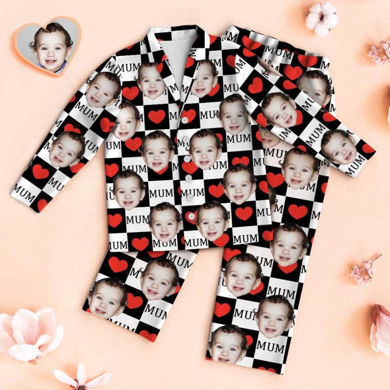 Pyjama Visage Personnalisé Love Mum Ensemble Pyjama Photo Personnalisé Cadeaux Fête Des Mères