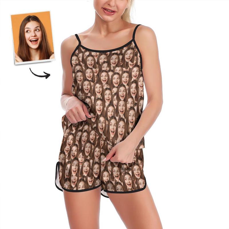 Pyjama Visage Personnalisé Jarretelles Sleepcoat Shorts Ensemble De Lingerie Vêtements De Nuit D'été - Face Mash