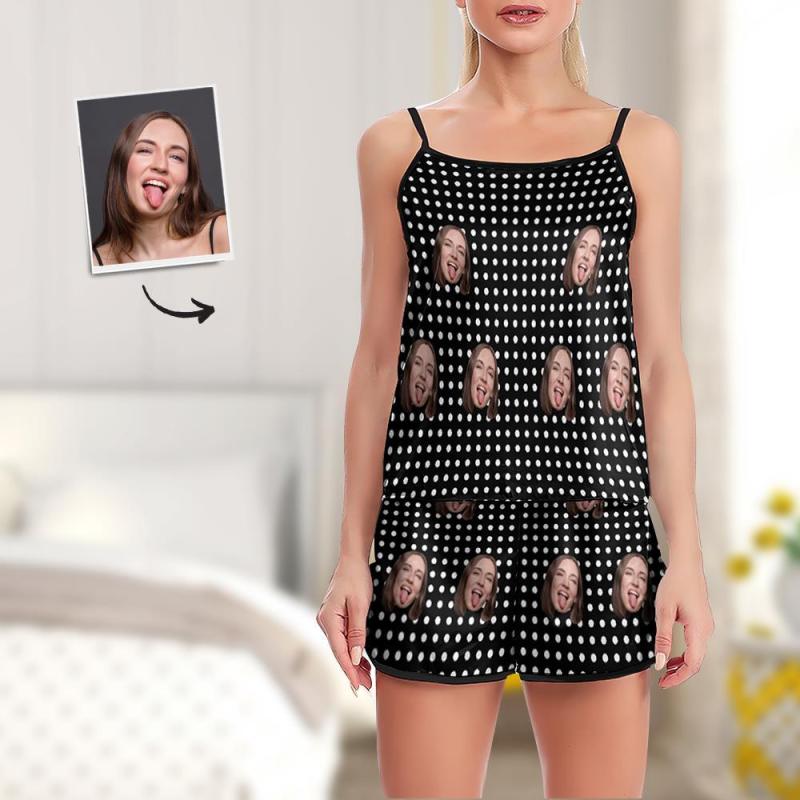 Visage Personnalisé Pyjamas Jarretelles Sleepcoat Shorts Ensemble De Lingerie Vêtements De Nuit D'été - Polka