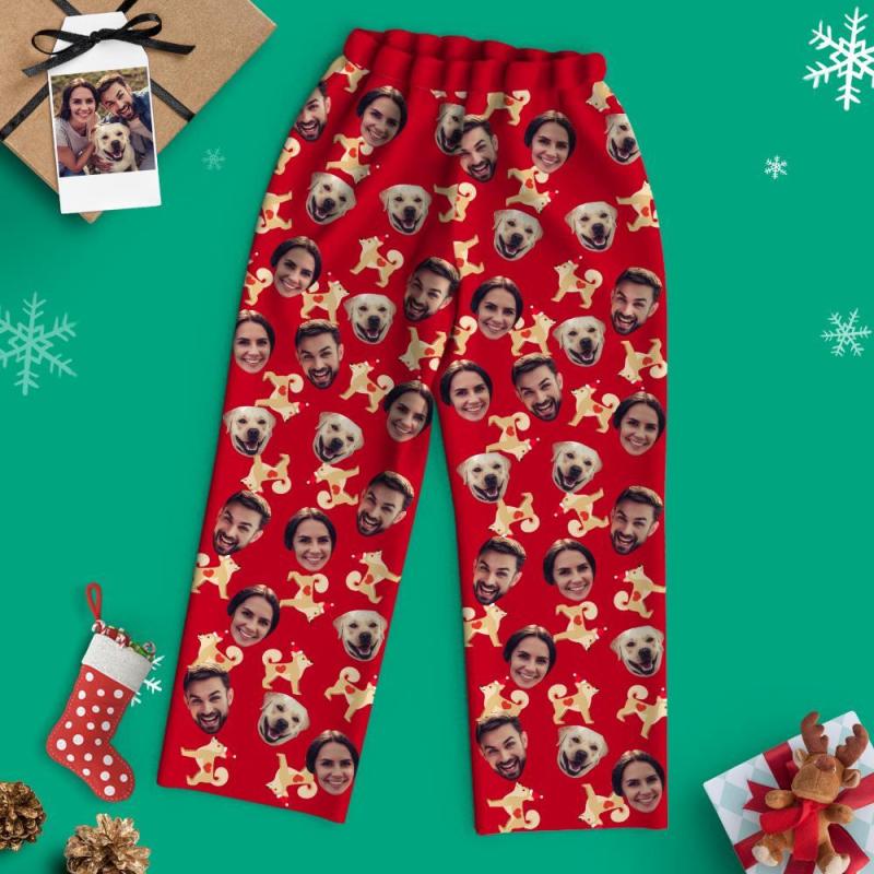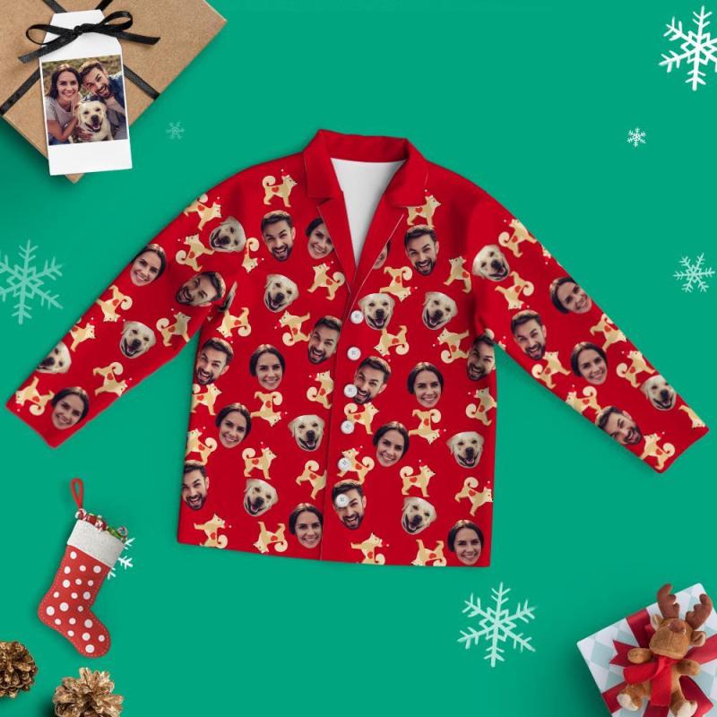 Pyjama à manches longues de Noël avec visage personnalisé - Chiens d'appartement