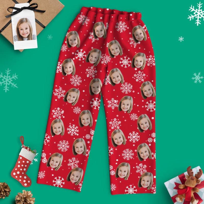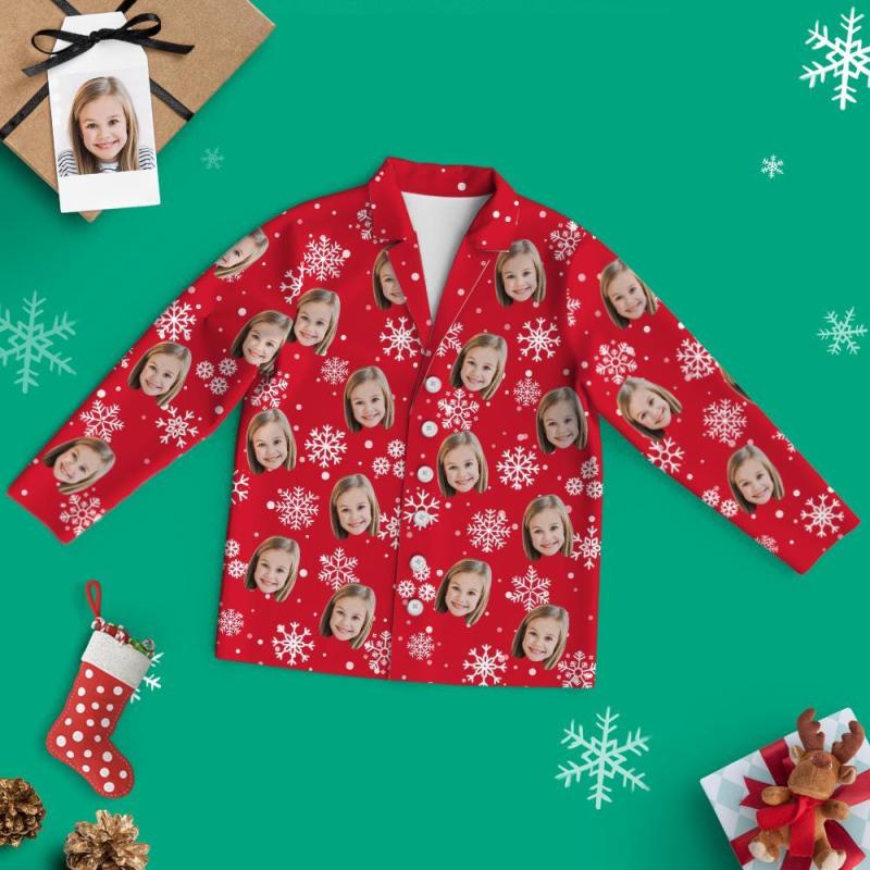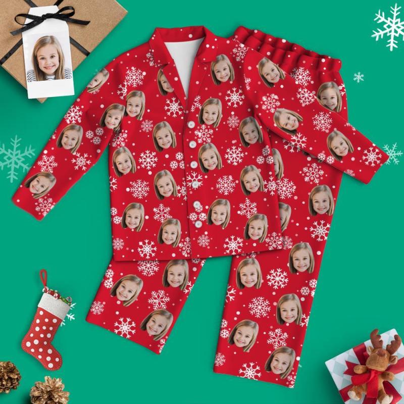 Pyjama à manches longues de Noël avec visage personnalisé - Flocons de neige