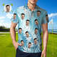 Polo Visage Personnalisé Bleu Clair Feuilles Visage Polo Pour Hommes