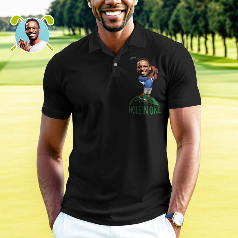 Polo Personnalisé Avec Visage Personnalisé, Trou Drôle En Une, Chemises De Golf Avec Photo Personnalisée Dans Votre Choix De Teint