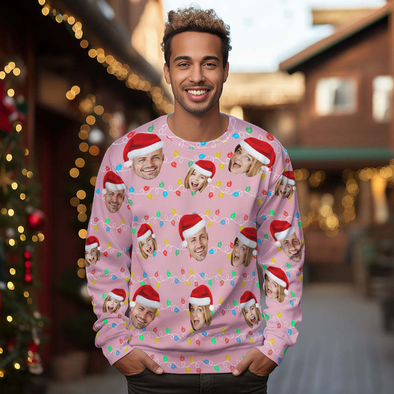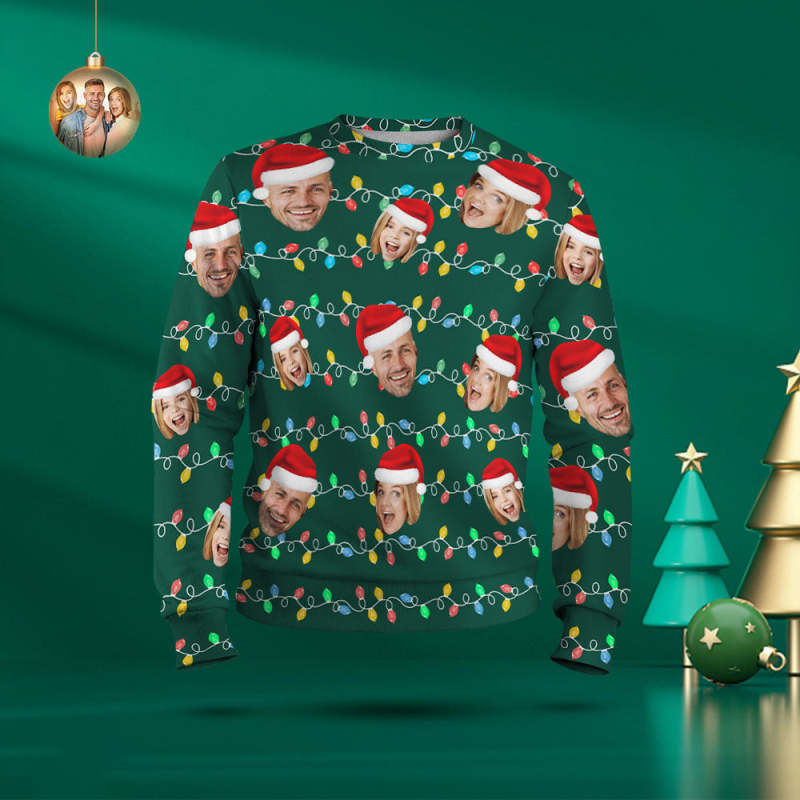 Sweat À Capuche Personnalisé Avec Visage Rond, Photo Personnalisée, Famille De Noël, Led, Unisexe