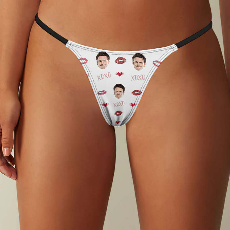 Visage Personnalisé Sexy Kiss And Love String Tanga Femme Xoxo