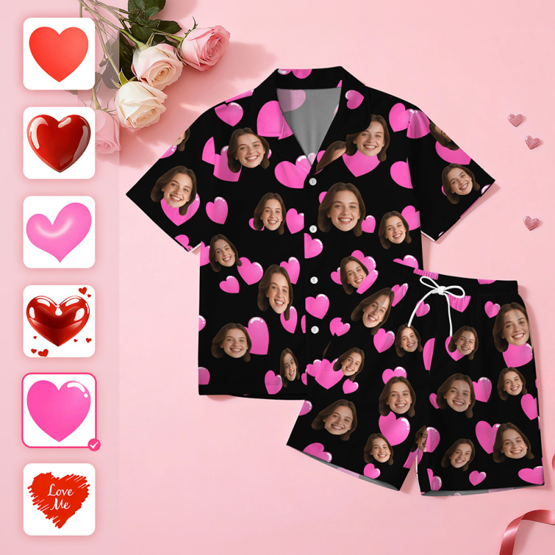 Pyjama Personnalisé À Manches Courtes Avec Visage En Forme De Cœur, Vêtements De Nuit Pour Couple, Cadeaux D'amour De Saint-valentin Pour Elle