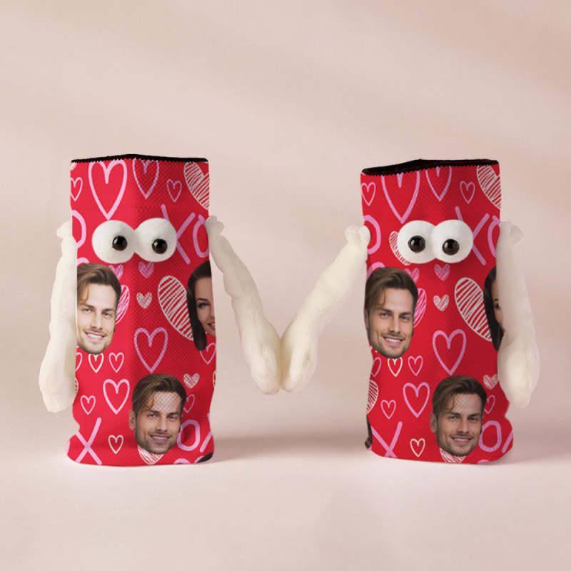 Chaussettes Personnalisées Avec Visage, Poupée Drôle, Chaussettes Rouges À Mi-tube, Chaussettes Magnétiques Tenant Les Mains, Cadeaux De Saint-valentin Xoxo
