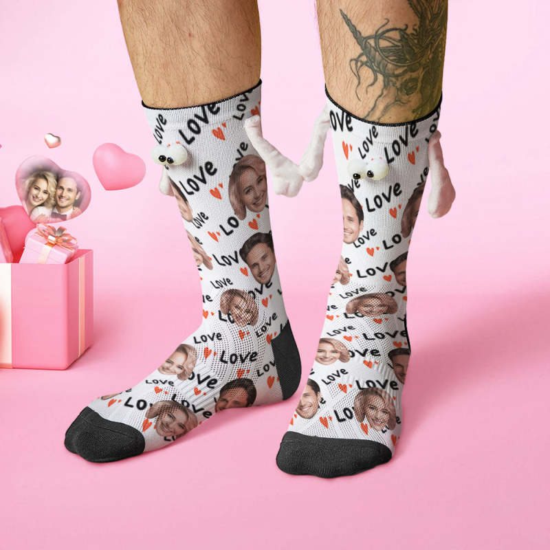 Chaussettes Personnalisées Avec Visage, Poupée Drôle, Chaussettes À Tube Central, Chaussettes Magnétiques Tenant Les Mains, Cadeaux D'amour Pour La Saint-valentin