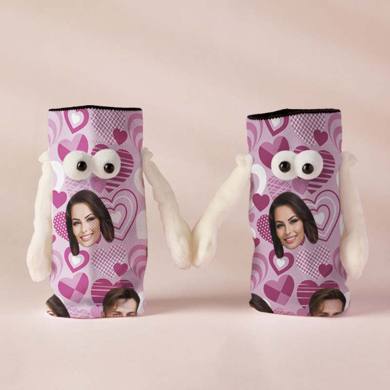 Chaussettes Personnalisées Avec Visage, Poupée Drôle, Chaussettes À Mi-tube, Chaussettes Magnétiques À Tenir Les Mains, Cœur Violet, Cadeaux De Saint-valentin