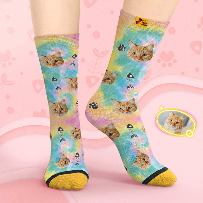 Chaussettes Personnalisées Pour Le Visage Chaussettes Personnalisées Imprimées En 3d Digital Tie-dye Pet Face