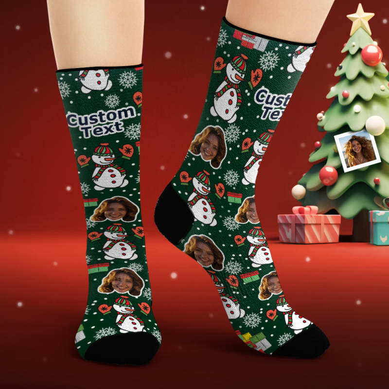 Chaussettes Visage Personnalisées Photo Personnalisée Chaussettes Vertes Bonhomme De Neige Drôle