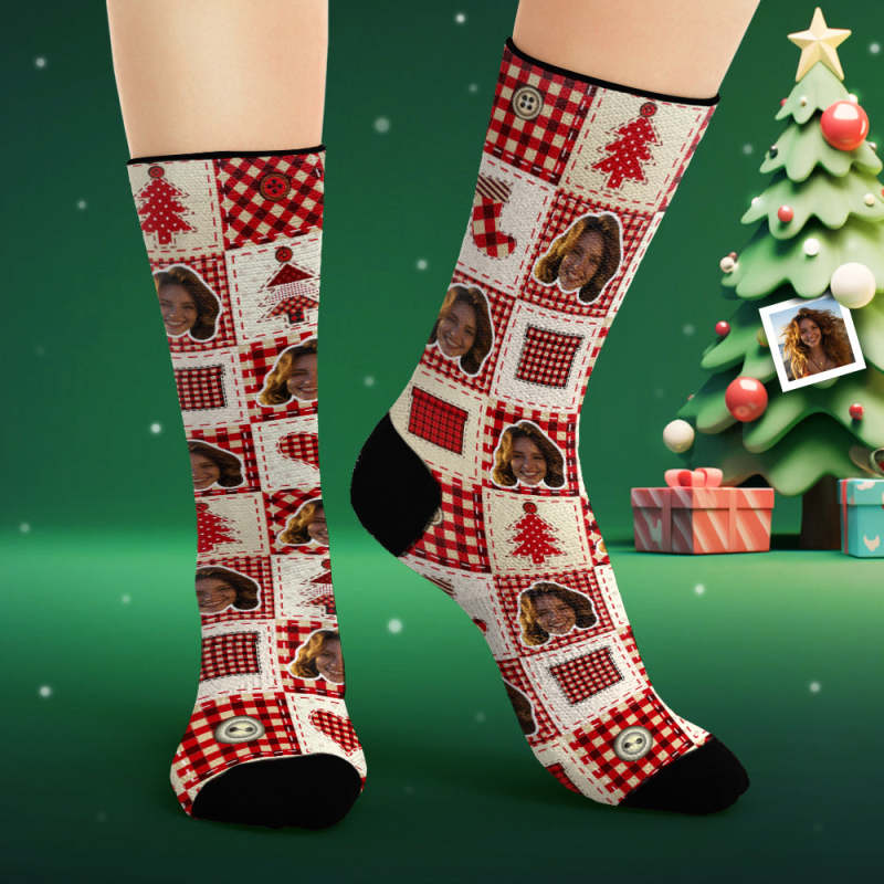 Chaussettes Visage Personnalisées Chaussettes Photo Personnalisées Motif À Carreaux De Noël