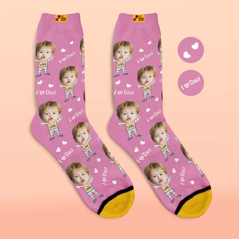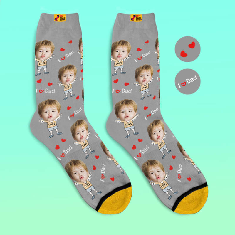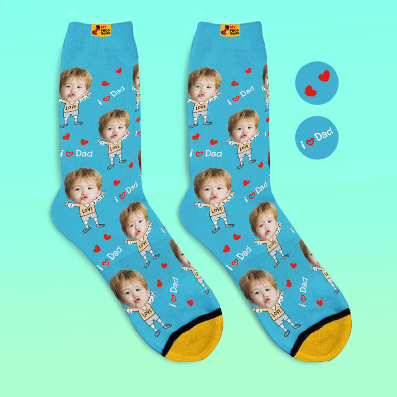 Chaussettes Visage Personnalisées Chaussettes Imprimées Numériquement Photo 3d J'aime Papa