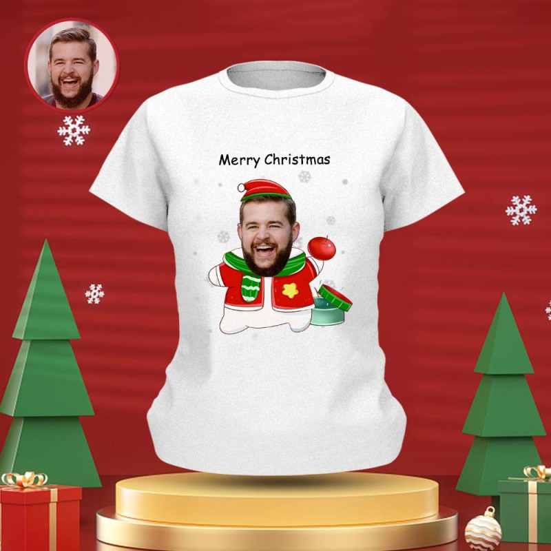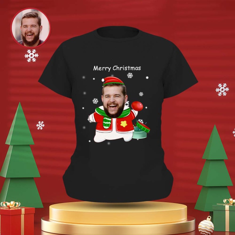 T-shirt Visage Personnalisé T-shirt Photo Personnalisé Cadeau Pour Femme Et Homme Joyeux Noël