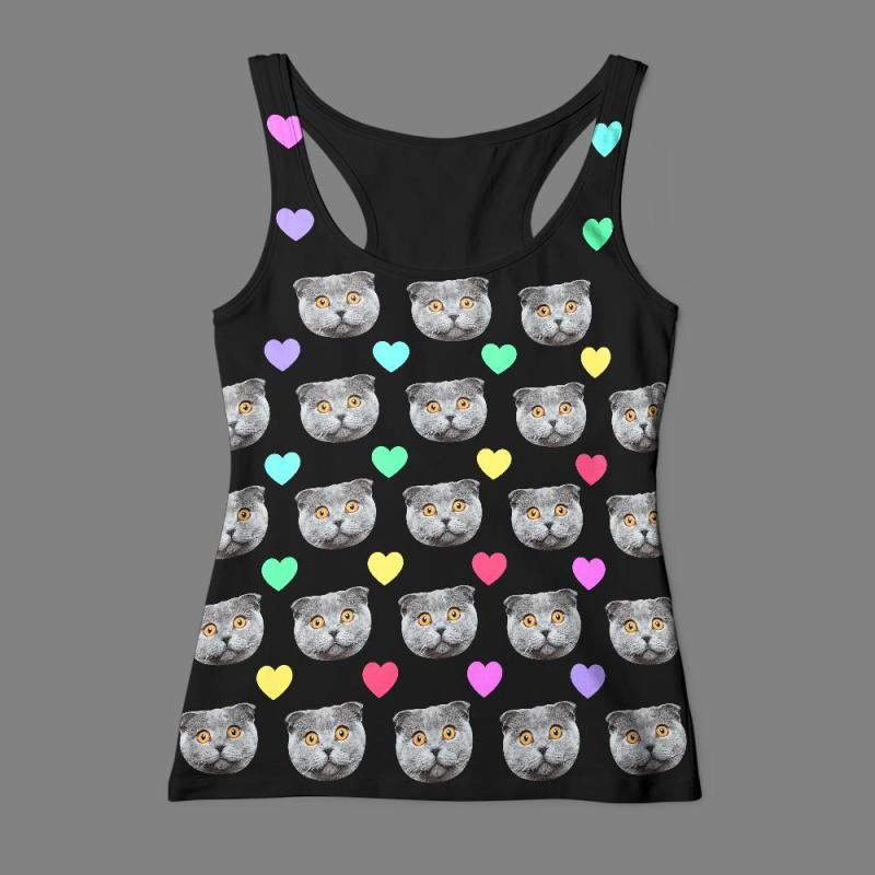Débardeur Visage Personnalisé Chat Coeur Coloré