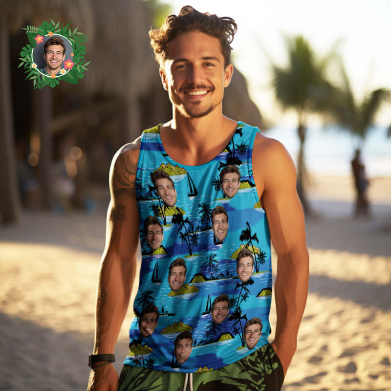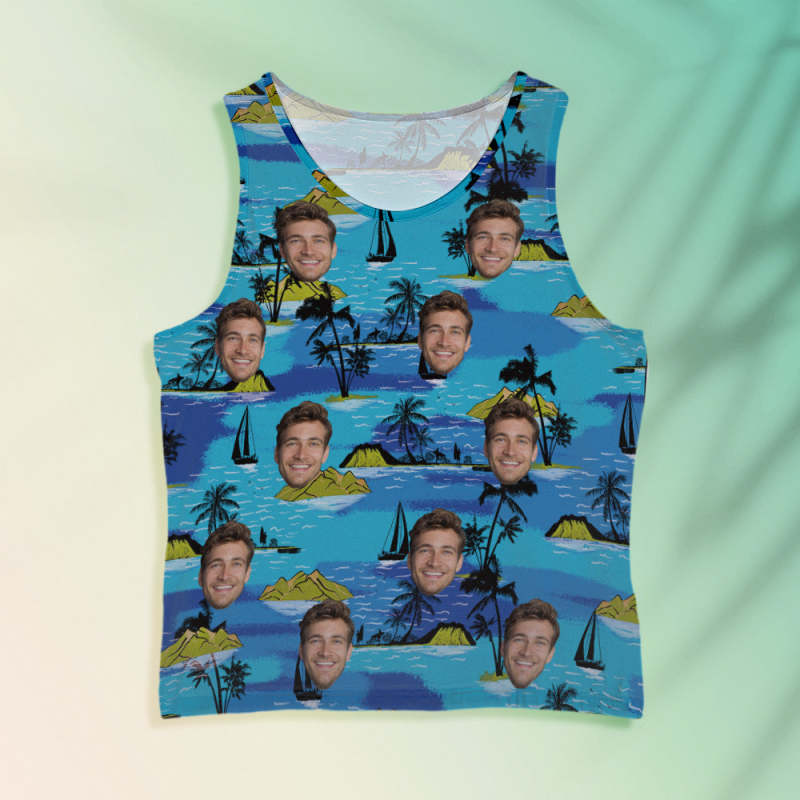 Débardeurs Visage Personnalisés Chemise Sans Manches Homme Grandes Feuilles