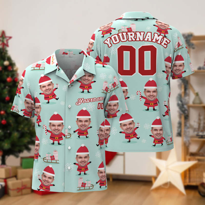 Chemises Hawaïennes Avec Visage Personnalisé, Chemise Avec Photo Et Texte Personnalisées, Chemises De Noël Pour Hommes, Père Noël Et Cadeaux