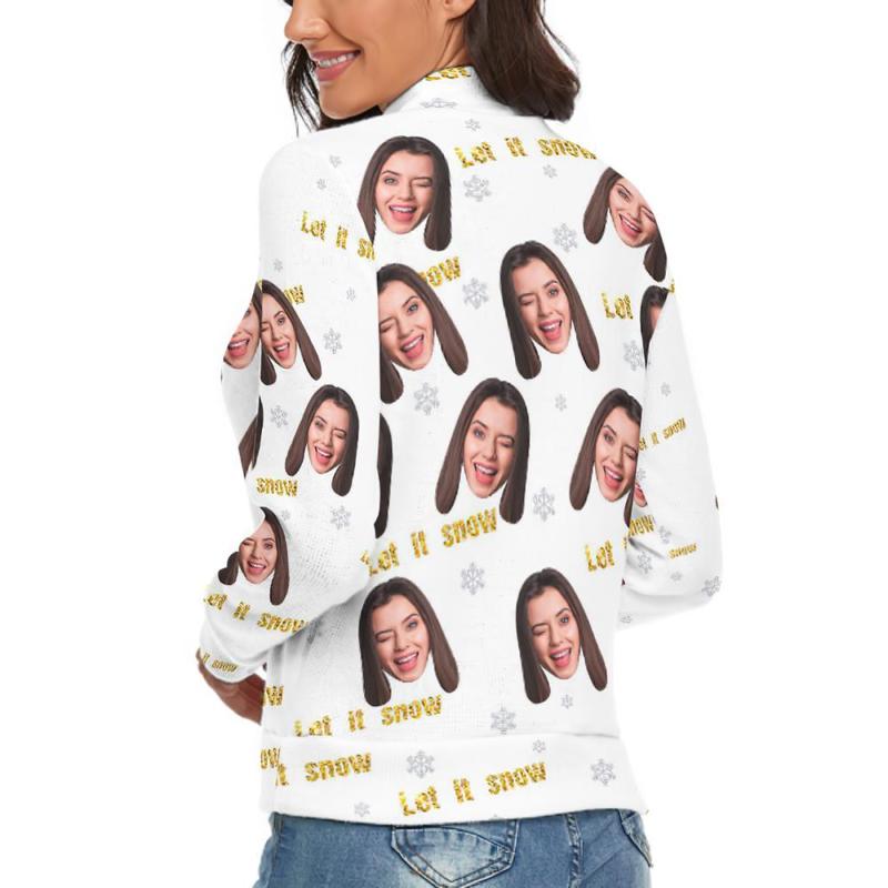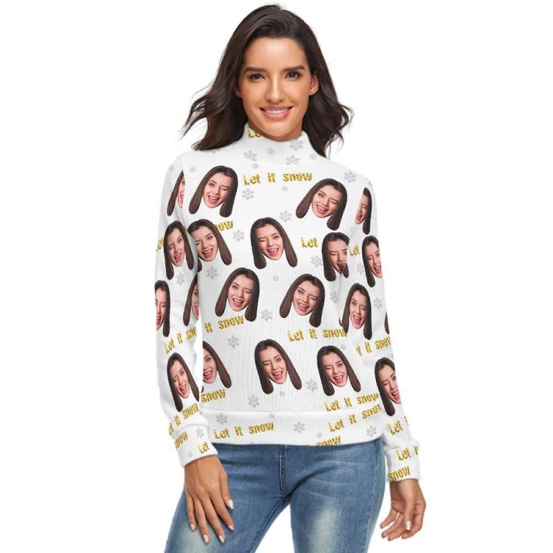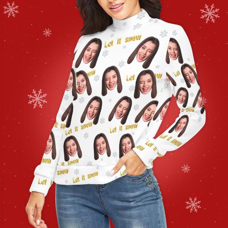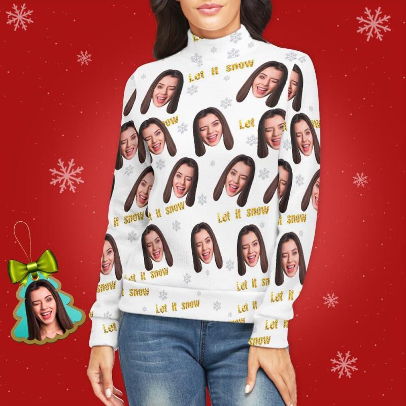 Col Roulé Visage Personnalisé Pour Les Femmes Chandail De Noël Moche Pulls Lâches Tricotés - Laissez-le Neiger