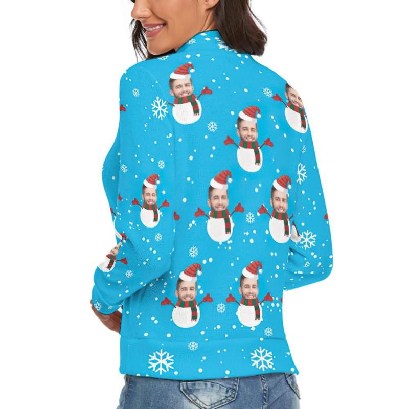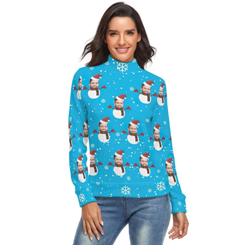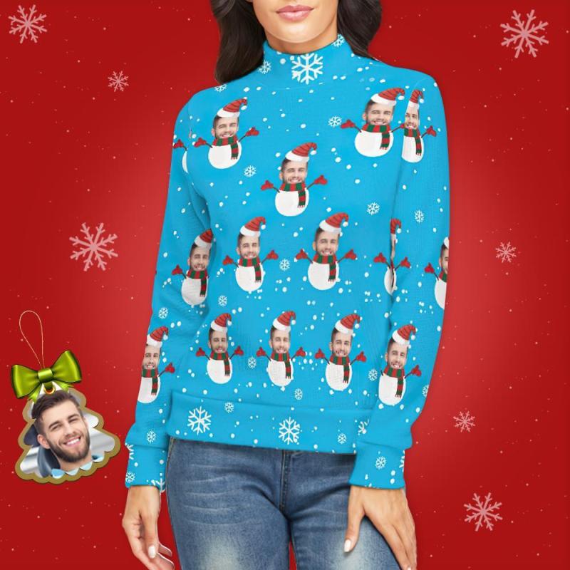 Col Roulé Visage Personnalisé Pour Femmes Chandail De Noël Moche Tricoté Pulls Amples - Bonhomme De Neige