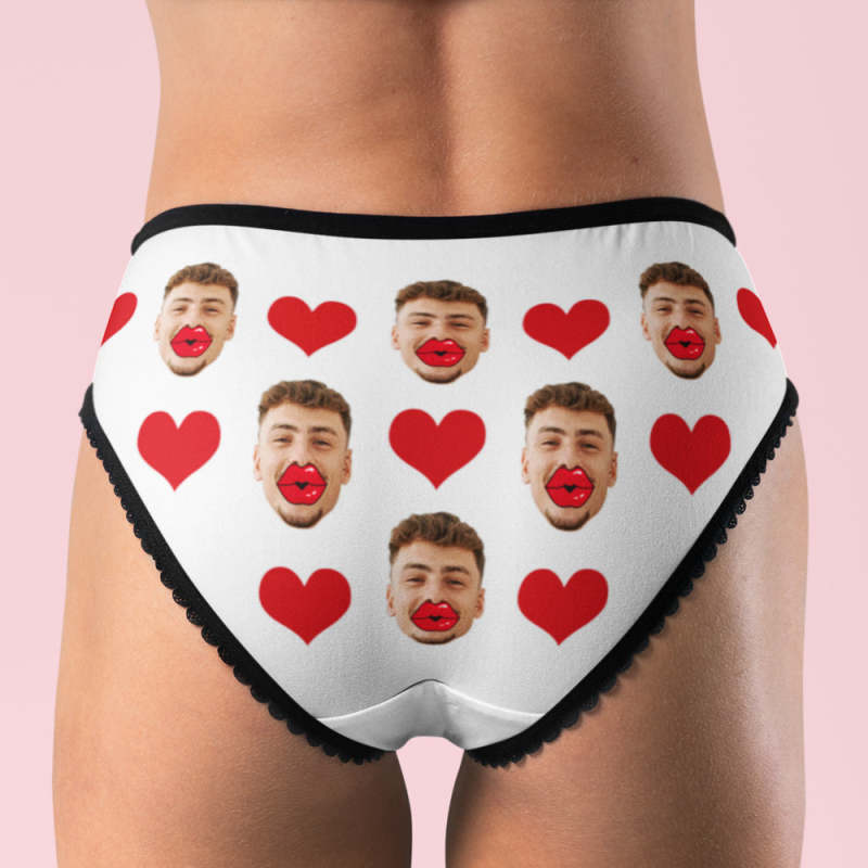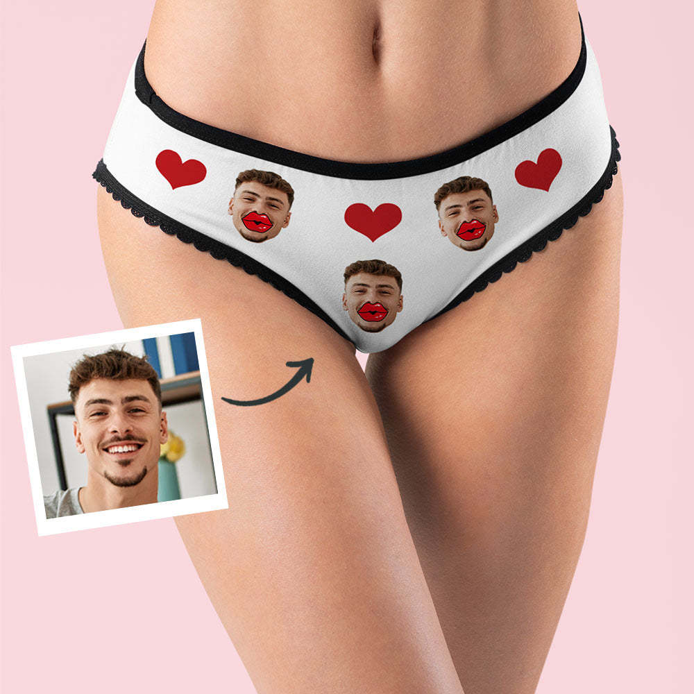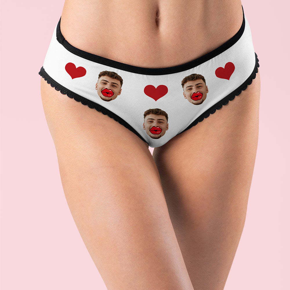 Sous-vêtement Visage Personnalisé Lèvres Rouges Personnalisées Et Sous-vêtement Cœur Cadeau Saint Valentin