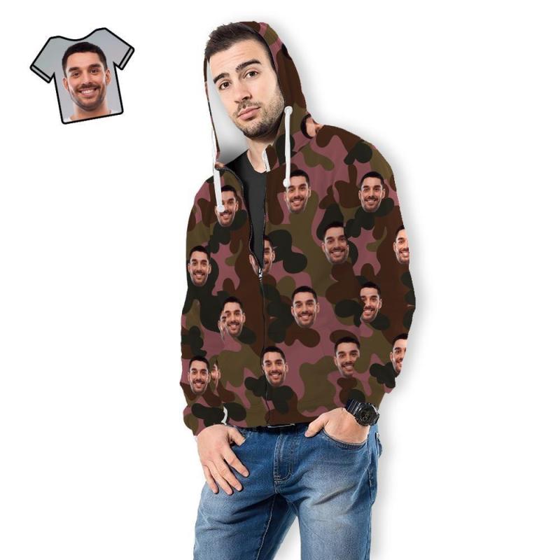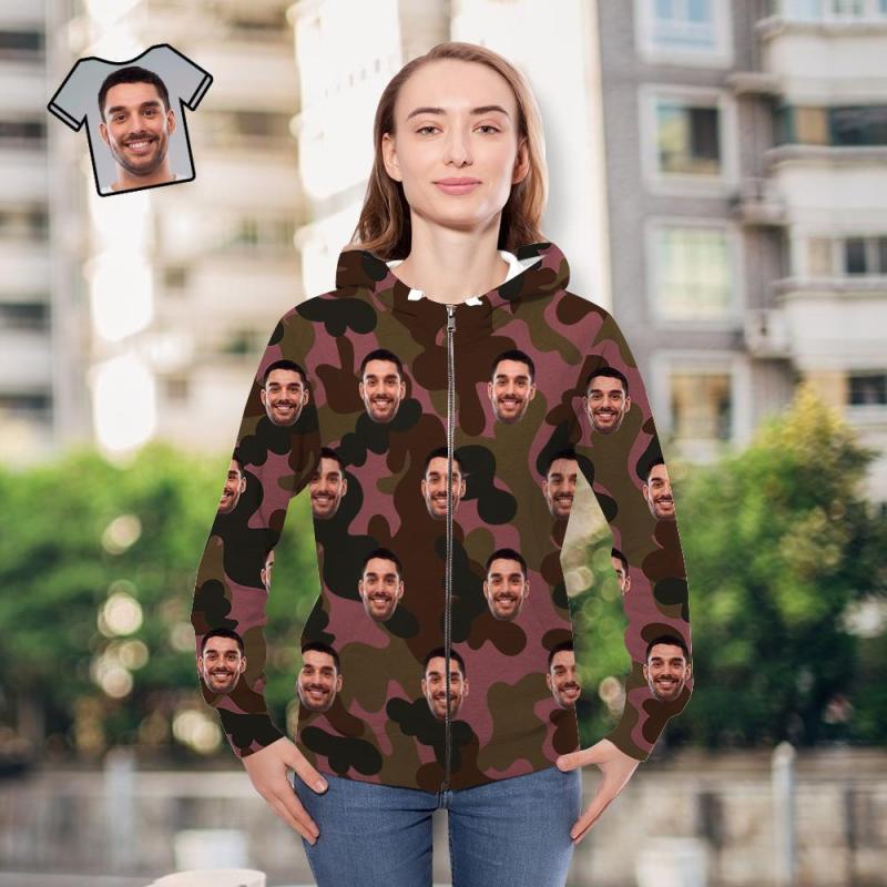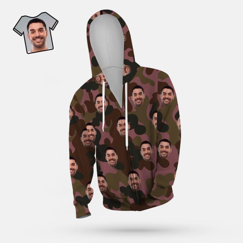 Custom Face Unisex Hoodie Casual Imprimé Camouflage Rouge Foncé